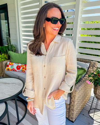 Long Sleeve Double Gauze Button Down Shirt in Natural