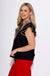 This layered cap sleeve top brings classic charm with a modern, elevated twist. Designed in a timeless black base, it features a standing neckline with a flattering notched V-neck for easy wear. The plaid contrast accent adds a heritage-inspired touch, while the red scallop trim detail delivers a subtle pop of color that sets this piece apart. Polished yet wearable, this top pairs beautifully with denim, trousers, or skirts for a look that feels both classic and fresh.