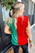 Color Block Velvet Ruffle Sleeve Top