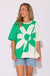 Elevate your style with our Daisy Block Top! This vibrant top features a unique colorblock design with daisy patches, a flattering U-neckline, and a vented hemline. Its drop shoulder and short sleeves offer a comfortable fit. Perfect for adding a pop of personality to any outfit!