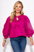 Introducing the Peplum Poise Bow Top, the missing piece to your wardrobe! With its elegant peplum design and playful bow tie, this top adds a touch of sophistication to any outfit. The U-neck and balloon sleeves provide a flattering silhouette, while the band cuffs add a touch of femininity. Stay poised and stylish with this must-have top!