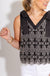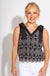 Delicate details take center stage in this feminine sleeveless top, featuring a black backdrop adorned with white floral embroidery. The exposed stitch accents and V-neckline offer a handcrafted feel, while bow-tied shoulder straps add a soft, whimsical touch. Whether dressed up with trousers or paired with casual denim, it’s a standout piece with timeless charm.