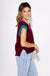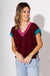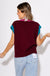 Elevate your wardrobe with the Colorblock V-Neck Vest in Burgundy. This sleeveless sweater knit pullover features a flattering V-neck and stylish colorblock ribbed accents that add subtle texture and visual interest. Its solid construction ensures versatile layering, making it perfect for both casual and polished looks. Comfortable and chic, this vest is an effortless way to refresh your outfit with a touch of modern sophistication.