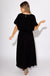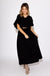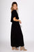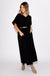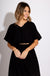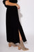 Effortless chic in a coordinated duo. This black two-piece set features a pull-on midi skirt with an elasticated waistband, side pockets, and a subtle side slit for ease and movement. The matching crop top showcases a flattering V-neck with short dolman sleeves and a single button closure at the back for a polished finish. Both pieces are crafted from lightweight, woven fabric with smooth lining—offering a sleek, non-sheer silhouette perfect for day-to-night style. Perfect for dressing up for the holidays, this set brings understated elegance to your festive wardrobe.