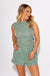Get game-day ready in the Sunny Stitches Two-Piece Striped Set in Green—your new MVP look for the stands or the sidelines! This winning combo includes a sleeveless mock neck knit top that brings the style, and elastic band eyelet shorts that bring the comfort. Whether you’re tailgating, cheering from the bleachers, or just repping your team colors around town, this set scores major points for both flair and function. Style it with sneakers for kickoff or gold accessories for that post-game glow!