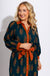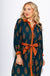 Freshly feminine with a touch of fall charm, this botanical print midi dress is the perfect mix of elegance and ease. Set against a rich hunter green background, the delicate floral pattern is elevated with bold orange contrast trim and a removable self-tie belt that cinches the waist just right. Featuring a button-front closure, 3/4 sleeves, and a flattering midi length, this dress is designed with both comfort and style in mind. Side pockets and a flowy, lined silhouette make it as practical as it is pretty. A go-to choice for fall gatherings, brunch dates, or everyday wear with a chic twist.