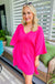 Step out in style with this chic swim suit cover-up. Crafted from solid textured fabric, this bat wing V-neck mini dress offers a relaxed and comfortable fit. The elasticized waist with a self-tie tassel detail accentuates your figure while providing a customizable fit. Lightweight and unlined, it's the perfect piece for layering over your swimsuit at the beach or by the pool. Enjoy its breezy and effortless style all summer long.
