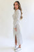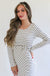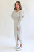 Long Sleeve Waist Twist Side Slit Stripe Maxi