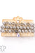 This bracelet has three strands of crystal and textured round beads.  The charm is a 10mm Austrian crystal in a setting custom made for Pink Panache in the USA.